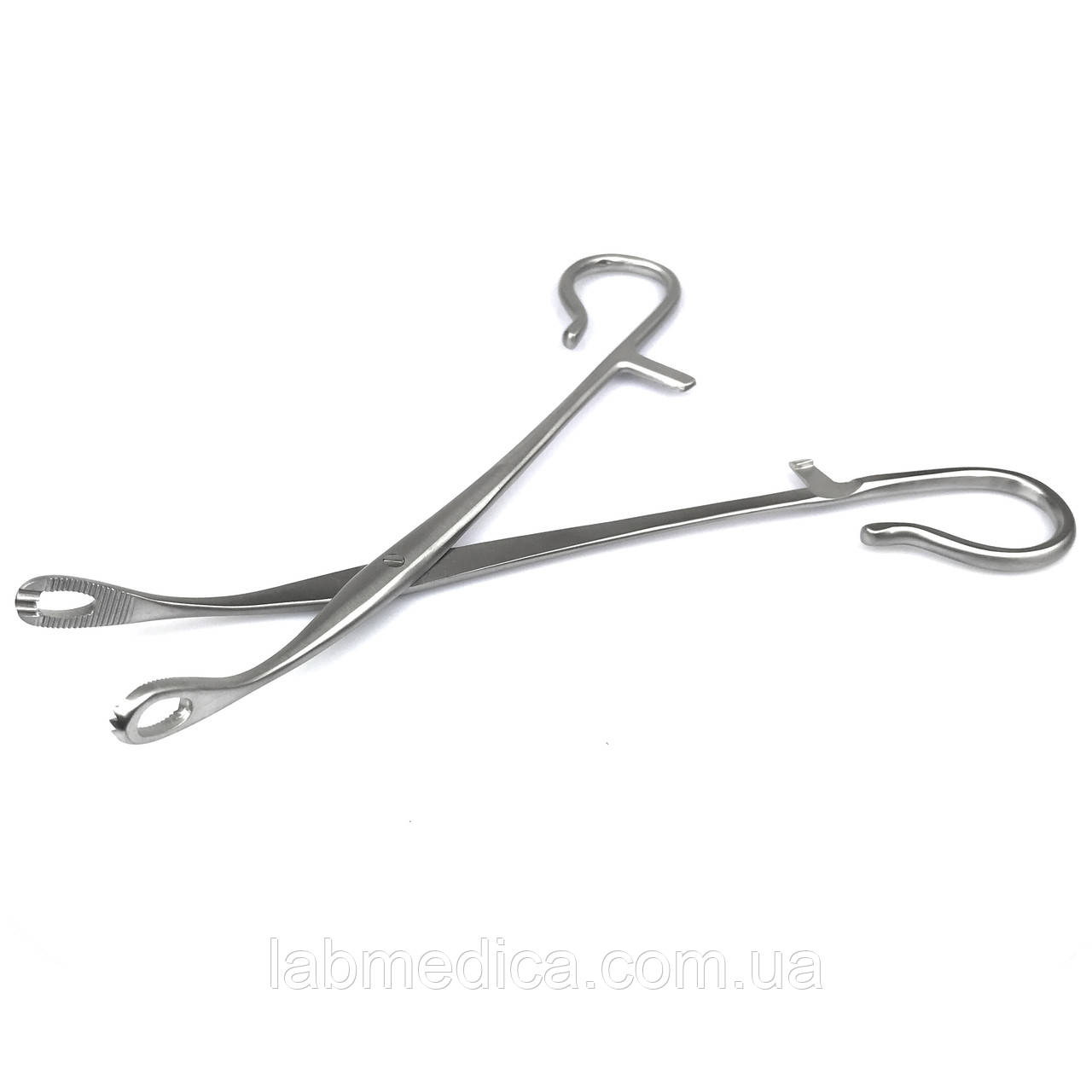 Щипці для захоплення мигдалін через Blohmke вигнуті вікончасті з зубцями зубчасті. Довжина 20 см SURGIWELOMED